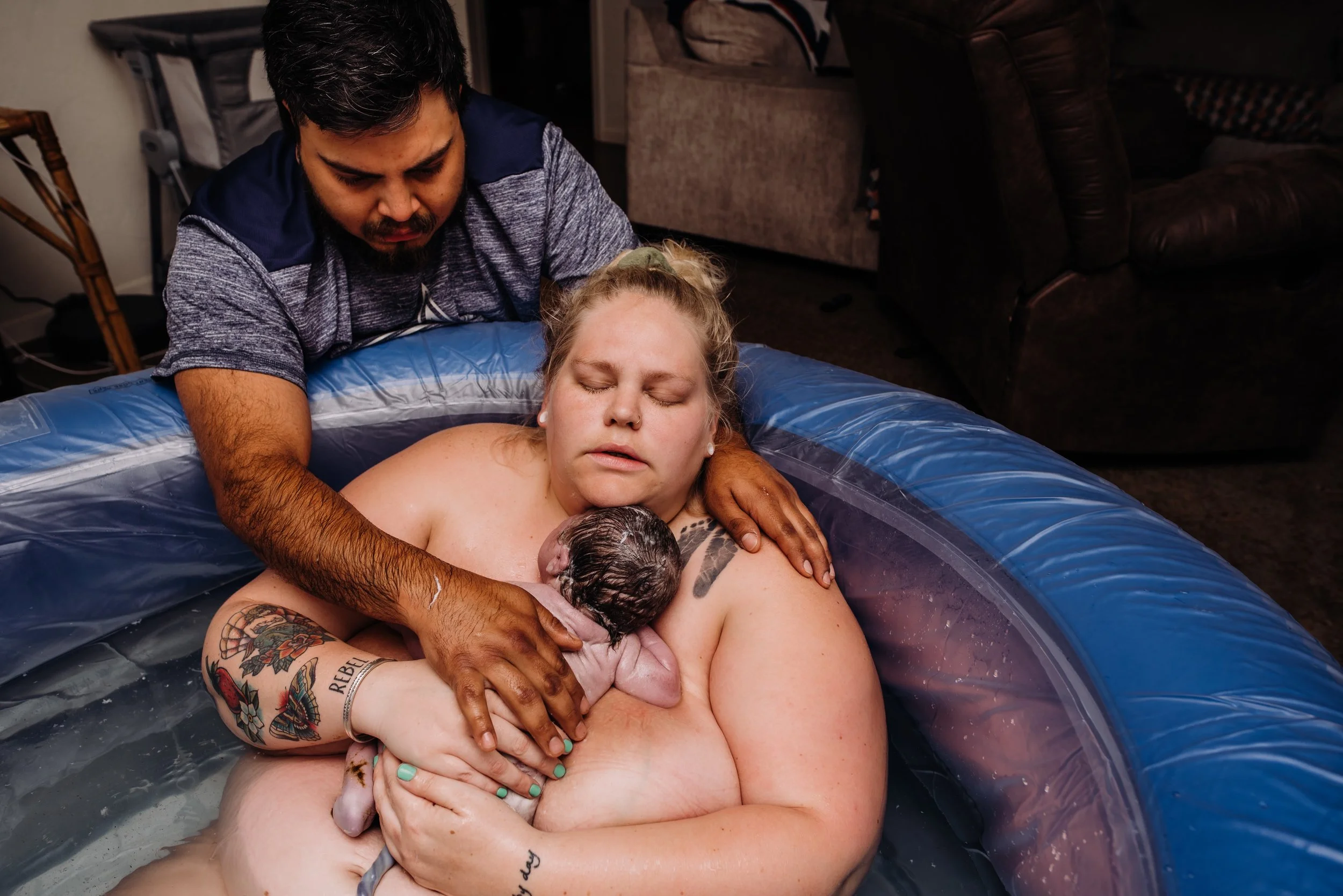 All day Thursday I was having light, sporadic contractions, not much different than the past few weeks. The day before I had the overwhelming urge to clean the house, went to the chiropractor, and had my doula come and hit some pressure points. I wanted help assist my body to progress so I stayed active throughout the day Thursday, was doing squats, doing curb walks when I could, and staying as hydrated as possible. I made a nail appointment for in the evening so that I could relax a bit more and have a moment to myself without the kids. (My nail tech asked how far along I was and I told her 41 weeks today. She jokingly said I was going to go home and have a baby after we were done). After I left my nail appointment, I went home and asked my neighbor to go on a walk with me while my mom still had the kids. We went walking for about 30 minutes, a little over a mile and half and I did curb walks throughout. I still was having sporadic contractions but was hoping I could get them to pick up. Around 8:30, I went and picked up a small grocery order and then went to grab the kids. My moms cats just had kittens so I made sure to get some kitten cuddles in for a bit to assist in releasing some oxytocin. Once we got home, it was about 9:15 and I was feeling pretty hungry so I whipped up some Italian spinach wraps for myself and Tony. We ate and shortly after I started feeling nauseous. I told Tony that my contractions seemed to be picking up and to get some rest just in case. Around 10:30 I decided to take a shower, texting my doula to let her know that I felt off. The contractions were low and I was feeling an intense amount of pressure, making it difficult to breathe almost. After I got out of the shower, I laid down with Delilah and Rebel so they would go to sleep. I started timing my contractions and they were ranging anywhere between 3-6 minutes apart and about 30-45 seconds long. I decided to stop tracking and try to go to sleep. A few minutes after I started dozing off, I had a much stronger contraction that woke me up and I decided I should get ready to call my doula to head our way. All of a sudden, I thought I had peed the bed. As she answered I said, “how do I know for sure if my water broke” and then it started gushing some more and I said “oh no, yeah my water definitely just broke”. (I thought maybe I had just peed due to the intense pressure). It was exactly 12am. After I hung up with her, I called my midwife to let her know my water had broken and that I was having contractions. Then I called my mom for her to head over and woke up Tony for him to start setting up the birth pool. As Tony was blowing up the pool, I was holding Rebel (he was just about to fall asleep when my water broke so he was up with momma making sure I was all good). I put on music and waited for everyone to arrive. I danced with Rebel a bit, swaying & singing to him as I breathed through the surges, holding him close knowing he was about to no longer be my littlest babe. The waves were getting stronger and more intense and I kept imaging myself closer to holding our baby. As Tony was filling up the pool, my contractions got intense quickly and I needed the relief, so I got in before it was done being filled. I asked Tony what time it was and it was a little after 1am. I knew my midwives and doula would be arriving shortly. My contractions were strong and I started to feel panicky, I had a hunch I was transitioning but didn’t want to psyche myself out. I told my mom and Tony, “I’m panicking, y’all”. And as soon as a said it, my midwife walked through the door (I think it was around 1:04am) and a sense of calmness washed over me. She came in, asked how I was and I think she could sense the intensity I was feeling. As she got some things set up, a wave hit me and she came over to me, gently caressed my face, whispering to me to soften my face and to give into the contraction - so I did. Again, that rush of calmness and reassurance rushed over me for a moment. Another contraction hit, I got on my knees, leaning on the side of the pool, and Tony gave me counter pressure on my back. And then another one hit. And another, at which point I let out a loud, grunted “fuck” and my midwife said, “there you go, let it out”. I could feel baby moving down and the inevitable feeling to push. At that time, my doulatog walked in and immediately started taking pictures, documenting our incredible birth. I was moaning loud, trying to work with my body, pushing out my baby. The pressure was so intense, I knew I would be meeting my baby shortly. I reached down to see if I could feel the head but it was just soft, squishy hair. Tony got ready to catch the baby. A few more waves and baby was out. Tony put him on my back as I came back down to earth, thinking to myself “did we really just do that?” As I turned over (still on my knees), Tony was holding HIM up to me and I saw his testicles I said “it’s a boy!” He hit my chest and I remember saying “we did it”. Tony held us and I was in shock, not quite back in my body yet, still on cloud 9. I remember asking if he was okay to which everybody replied “yes”. He was crying and absolutely perfect in every way. He was born at 1:21 am, about 17 minutes after my midwives arrived. My mom woke up Delilah who was sleeping in bed, and she woke up right as I was pushing him out. Right after he was born, Rebel fell asleep. I think he just needed to know momma was all good. Delilah climbed into the pool with me and she greeted her new baby brother. She was giving him kisses and telling him she loved him, and me, being the sweet baby girl she is. We chilled in the pool for a bit, waiting for the placenta. We decided to get out because I was getting uncomfortable and we made our way to the bed. We were giving my body time to birth my placenta and I wanted to get baby to latch for his first feed. I laid down, my midwife helped get him to latch, and we waited a